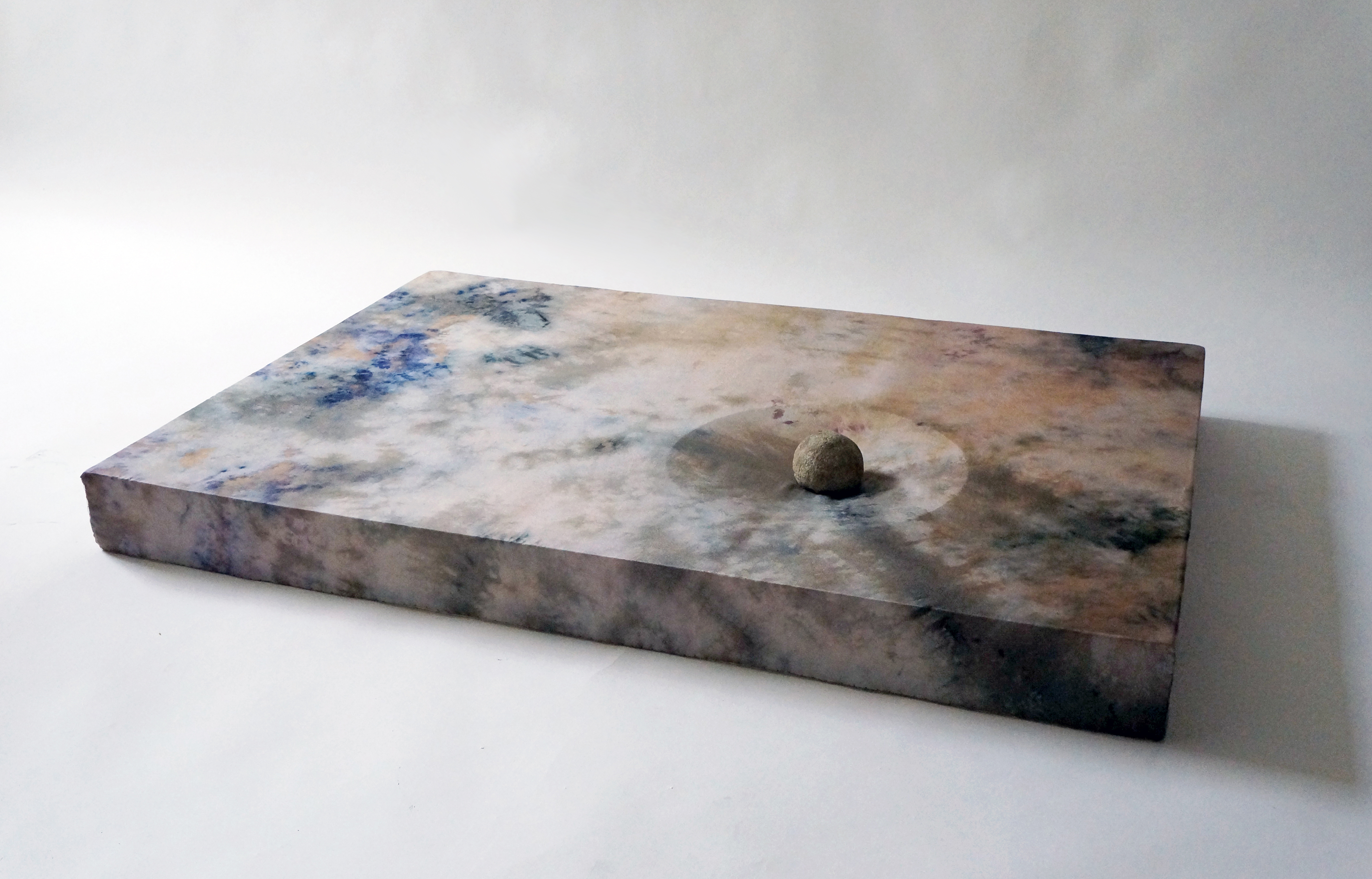 Material och teknik: sömnad, textil handfärg ning på siden med naturligt förekommande pigment, skumplast, malsten