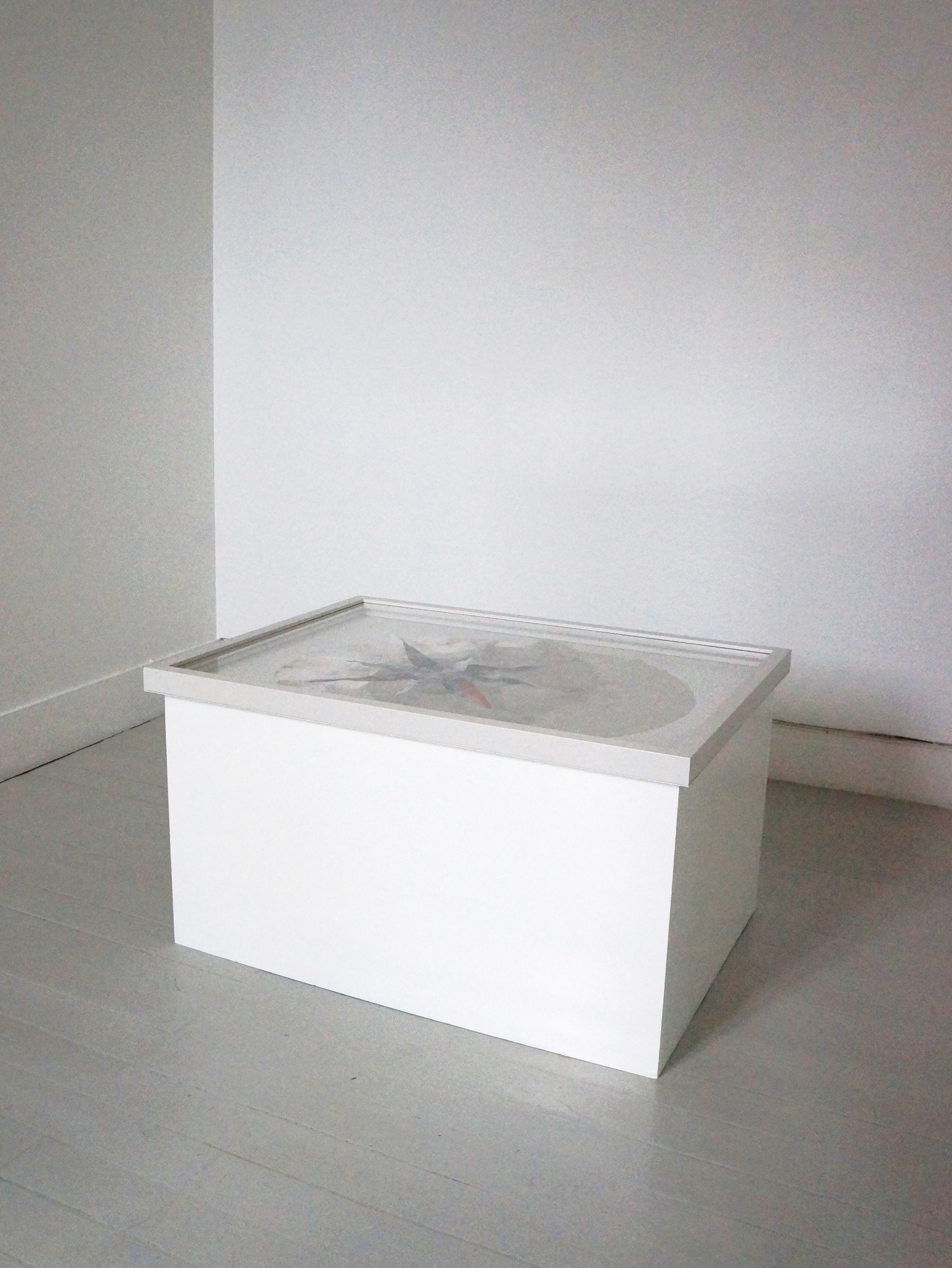 Material och teknik: kondrit (stenmeteorit), skumgummi, halm, hand- och växtfärgade sidentyger, tvålmassa, lav, plast, grenar, barr, handfärgade ull- och bomullstyger, snäckor, sand, speglar, petriskål samt jordstenar från bland annat Matera/Italien, Sierra Madre/Mexiko och Kjerringøy/Norge