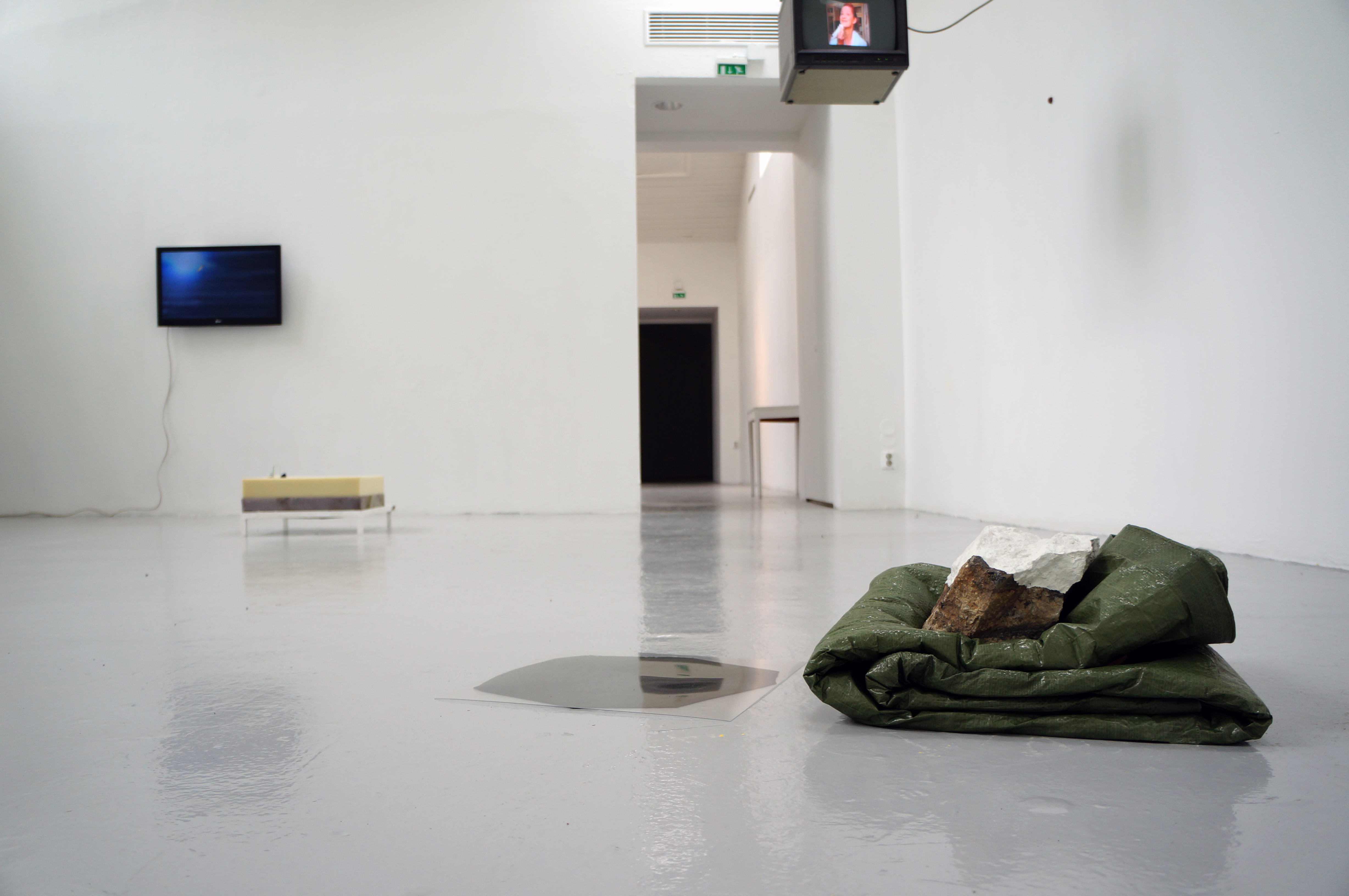 material och teknik: sten, presenning, stål, handfärgat siden- och ulltyg, sömnad, målarfärg, skumplast, spegelglas, spackel, plastfilm, bomullsvadd